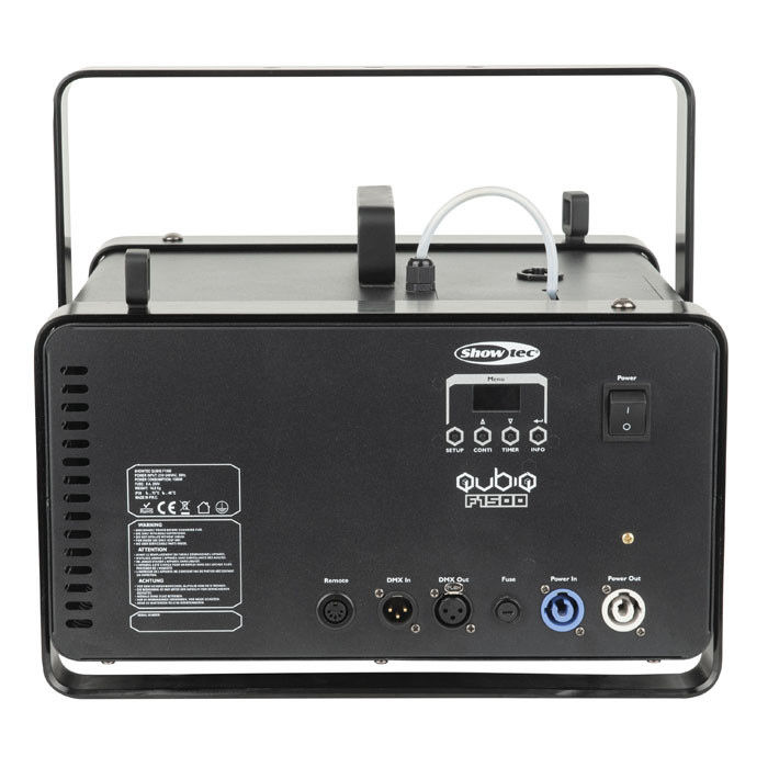 De Showtec QubiQ F1500 is een professionele fazer met een praktisch design. Door zijn goed te regelen output is deze geschikt voor kleine tot grote evenementen locaties. Wij adviseren deze dmv DMX aan te sturen, het menu en de remote is vrij onhandig. De Fazer komt in een handige flightcase met kabeldoorvoer waardoor deze compleet gesloten geplaatst kan worden op de stage of in de barrier lijn. Doordat deze machine redelijk zuinig is, is bijvullen tijdens het evenement meestal niet nodig.